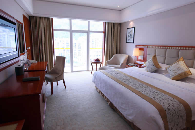 酒店擁有各類客房350余套,大小會議室共7個,可提供全球多媒體視頻會議,多功能廳還配備有國際知名品牌的八聲道同聲傳譯設備。多個特色餐廳可以同時容納800人用餐。桑拿中心、美容美發(fā)、KTV包房、網(wǎng)球場、商務中心、商場、乒乓球室、健身房和室內(nèi)游泳池等服務設施齊備。入住行政樓層的客人可以在行政酒廊享用早餐、下午茶和歡樂時光。