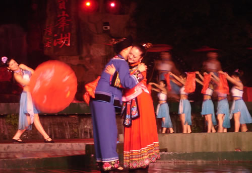 姑娘出嫁,為女人一生中最大的喜事,本應充滿幸福、歡樂的氣氛。然而,舊時湘西、湘南、鄂西、川西(成都等地)、黔東(銅仁、凱里一帶)諸地,卻流行著一種與之完全相反情調(diào)的古老婚俗——“哭嫁”。也就是在姑娘“出閣”之前,不但新娘本人哭得很傷心,像淚人一般;而且,新娘的母親、姐妹以及姑媽、姨媽、舅媽及其他交往較多的女友,都要陪著新娘哭。湘西土家族哭嫁的風俗尤為普遍、濃厚,不但哭嫁的時間較長(少則十來天,多達個把月),而且哭嫁歌也保存得古樸、完整。 姑娘出嫁為什么要哭?哪有那么多的東西可哭?這是一種蘊含甚為豐厚的人生禮俗,也是一種饒有興趣的婚俗事象。 俗話悅:“人不傷心不落淚!惫媚锍黾拗砸蓿且驗樵谂f式婚姻制度下,女孩(尤其是勞苦大眾家庭的女孩)總是作為犧牲品“拋”(賣)給夫家的,她們的身心受到極大傷害。因此,湘西等地的女孩在出嫁之前要哭泣,要呼號,哭嫁歌就是感情發(fā)泄的最好表現(xiàn)方式。 哭嫁的源起 哭嫁的風俗,不知道起源于什么時候。戰(zhàn)國時期,趙國的公主嫁到燕國去作王后,她的母親趙太后在臨別時"持其踵,為之泣,祝曰,必勿使返。"大約就是后來長盛不衰的哭嫁風俗的濫觴了。 這種風俗,直至清末還盛行于四川農(nóng)村中,隨地區(qū)變化而大同小異。解放前,聽老人們說,早些時候,沒有嫁而不哭的人家。如果出現(xiàn)嫁而不哭的姑娘,也會被鄰里看作沒有教養(yǎng)的人,傳為笑柄;相傳有出嫁姑娘不哭而遭母親責打的事,這位母親當然算得上是入流導演了。 舊時宣講故事中,有花轎臨門,父親強令哭《迎風罵媒歌》的情節(jié),可知哭嫁是有歌詞的,帶有表演性質(zhì),原是用來渲染氣氛,以悲襯喜;不過,因為婚姻是包辦的,真哭真罵的也不會少。 抗日戰(zhàn)爭后期,風氣較開,哭嫁之風已不盛行,而老人們卻還在津津樂道,哭的方式是,從婚期前一個月的首日起,入黃昏,姑娘訴哭約一個小時,其聲嗚嗚。十天以后,她的母親加入"陪哭";又十天以后,她的祖母加入陪哭。這家沒有諸姑姊妹,人們說,如果有的話,也應當加入陪哭行列的。 哭嫁在川西叫"坐堂"。清代吉道人《味蔗軒隨筆·坐堂詞》云:"婚姻之禮,各省風俗不同。然酌禮準情,各省亦大同小異。凡男家娶婦先賦之詩,謂之'催妝';女家親串頌女之詞,謂之'坐堂'。坐堂者,女當喜期將近之先數(shù)夕,其諸姑伯姊,置酒為女祖餞,各述吉祥之詞,以為頌美,女則申己之意以答。女左右更有少女,則隨而嫻習者也。其詞要多鄙俚,然有音韻凄清,風格遒勁,如古歌古謠者。羅江明府蔡,微服巡查鄉(xiāng)里,一日行至某處,值有女子歸,諸娣姒咸以諛詞頌女,女申意以答。忽風吹句入耳,詞曰:'鳳凰落在桌子上,哪個女兒肯離娘'。一字一轉(zhuǎn),音韻凄其,誰謂天籟之鳴,不在愚夫愚婦耶!"云云。吉道人姓周名際唐,成都人。吉道人記得明明白白,可惜他只記了一句哭嫁詞,難窺全貌。好在舊時坊間叢刻中有《訓女哭嫁》一種,可見一斑。這本小書的目錄有《閨聲哭》、《娘訓女》、《嫂哭妹》、《哭爹媽》、《哭哥嫂》、《花轎到屋哭》、《哭叔爺》、《哭兄弟》、《哭外公外婆》、《哭舅爺》、《拜香火哭》等等,編次有點凌亂,似乎隨手所記,未經(jīng)文人之手。遙想《詩》十五國風未刪之時,大約也不過如此吧! 閨聲哭 娘聽后園鳥雀驚,要聽房中女兒聲。 我娘當門苦葛藤,手攀苦葛訴苦情。 我娘苦情苦過了,女兒苦情才起根。 ............ 桔子開花葉子青,陽雀開聲我開聲。 新打銅盆才裝水,新打剪刀兩面青。 娘不開口我開口,娘不開聲我開聲。 當門一根木蓮樹,目連樹上掛卷經(jīng)。 一本經(jīng)書背完了,未見我娘來開聲。 虧了我娘睡得穩(wěn),爹媽眼淚貴如金。 哭爹媽 月亮彎彎照華堂,女兒開言叫爹娘。 父母養(yǎng)兒空指望,如似南柯夢一場。 一尺五寸把兒養(yǎng),移干就濕苦非常。 ............ 勞心費力成虛恍,枉自爹娘苦一場。 哭兄弟 黑漆茶盤烏木頭,姐姐離娘弟不留。 留到姐姐吃你飯,留到姐姐穿你衣。 兄弟當家掙家忙,嫁了姐姐買地方。 上頭買齊潼川府,下頭買齊遂寧鄉(xiāng)。 ............ 這個本子所記是川北的歌詞,以前所見的是川南,吉道人所記的是川西,川東,大約也不會大異的。遺憾的是,該書所記哭嫁詞雖有"只怨媒人莫良心"等語,卻沒有列出"罵媒專目,大約是怕媒人太難堪了吧! 其實,罵媒是哭嫁中必不可少的節(jié)目,也是最具反抗色彩的哭嫁歌詞。舊社會,婦女無婚姻自由可言,由于"三從四德"的束縛,平時對于自己的終身大事幾乎不能置一詞,全由媒人和父母擺布;因此,這登花轎之前的"罵媒",便是難得的發(fā)泄機會。這早已反映在戲曲和民間說唱等藝術(shù)之中。 以前,川劇《柳蔭記》有《英臺罵媒》一折,英臺罵媒人,言詞激烈,聲色俱厲,充分表現(xiàn)了祝英臺剛烈的性格和反封建精神。她罵道:"提媒婆,更恨她,胡言亂語嘴喳喳......唯愿你,房屋遭火化,田園水推沙。"但這場戲現(xiàn)在卻被刪掉了,五六十年代還有的,全國第一屆戲曲會演的川劇《柳蔭記》也有這一折,是陳書舫演的祝英臺,得了一等獎,F(xiàn)在城里人大約以為媒婆不必罵了,但偏遠地區(qū),媒婆似乎還在肆虐。不過,據(jù)說,媒人從來不怕你罵,反倒怕你不罵;你不罵,他的"霉(媒)氣"反而脫不了。這也是風俗民情中的一種幽默吧! 在三峽民間,特別是在巴人(土家族)