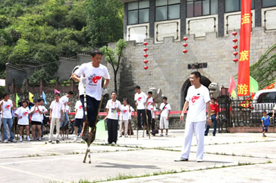 張家界高花燈亦稱高皇燈,是流行于永定沅古坪一帶富有民族特色的舞蹈。表演時(shí),12人至24人不等。配有鑼、鈸、嗩吶、鼓等樂器。每人手中拿一盞紙?jiān)鸁艋\,內(nèi)點(diǎn)蠟燭兩根,頂扎一木偶像,用五色紙剪成戲文故事如“八仙” 、“瓦崗寨”,“梁山英雄 ”之類。高花燈表演有一套程式,要求東起西落,進(jìn)一個“半邊月”,出一個“月團(tuán)圓”,舞個“太極圖”。亦可進(jìn)民房表演,叫“愿燈”,多為祝福、還愿或?yàn)槟臣蚁彩聹惾。打吆喝、打口哨則只能到戶外表演,叫“眾燈”,是讓大家看的。其形式又分民燈、戰(zhàn)燈。前者表演 古代先民的遷徙、繁衍、勞動、生活;后者表演打仗破陣。隊(duì)形變化有“織籬笆”、滾柱頭”、“十八斗”、“螺螄轉(zhuǎn)頂”、“八卦陣”、“過天星”、“一字長蛇”等二十余種。如破“象棋盤陣”,主人插三十二根香,擺成棋盤陣,表演時(shí),主人舉紅傘,玩燈者舉黑傘,從河道進(jìn),將眾“子”一一吃掉(即踩香),這是斗智的競賽。只見燈火如流星般穿插舞蹈 ,旁邊配以龍燈互舞(配龍玩燈,是高花燈的主要特點(diǎn)之一),那激起的鑼鼓聲、吆喝聲、口哨聲,掀起有節(jié)奏的聲浪,熱烈而歡快。 張家界高花燈發(fā)祥于張家界市永定區(qū)沅古坪鎮(zhèn)等地區(qū),與沅古坪地區(qū)接壤的沅陵、桃源、慈利等周邊區(qū)縣也有少量玩高花燈的習(xí)慣。 高花燈的燈代表著光明幸福,12個燈表示12個月,月月平安無事。每年春節(jié),每個村寨都要操練一班高花燈,辭舊迎新。制作時(shí),藝人用竹篾和紙?jiān)?2或24個燈籠,在燈籠下加上一個長柄燈托,并在燈籠上扎上五顏六色的“故事”,如“八仙”、“耿氏送子”等。夜晚,在燈籠里點(diǎn)上木油臘燭,一人舉一個燈籠,邊舞邊組成多種隊(duì)形。一眼望去,流光閃爍,尤如銀河戲舞。 張家界高花燈不但為本鄉(xiāng)本土的觀眾所喜愛,而且受到海內(nèi)外朋友及國際友人的高度贊賞。因?yàn)樗侵袊爬系拿耖g舞蹈代表,它以自成體系的記譜方法,延繼著中國舞蹈的血脈,以其悠久的舞蹈歷史和多元文化特征,被舞蹈界認(rèn)為是“中國舞蹈歷史上的活化石”,極具學(xué)術(shù)研究價(jià)值和很高的審美價(jià)值。已列入全省第一批非物質(zhì)文化遺產(chǎn)保護(hù)名錄。 高花燈相傳起源于東漢章帝初年,時(shí)“ 中蠻”覃兒健在澧水中下游舉義反漢,與漢軍“戰(zhàn)于洪下”(相傳為今大庸紅土坪,待考),洪下“蠻人”用火 把跳舞為義軍吶喊助戰(zhàn),終因漢軍勢眾,覃兒健與義軍全部戰(zhàn)死(至今留下懸鼓坪、御甲埡、扎營山、烽火臺等古戰(zhàn)場遺跡)。以后,當(dāng)?shù)匦U人每年都必在過 后年(從正月初一至元宵節(jié))打火把集會跳舞, 栽“ 陽樁”(土話栽跟頭),表示對“洪下之戰(zhàn)”的紀(jì)念 。久而久之,火把進(jìn)化成燈籠和扎人物事故,表演也 有一定規(guī)矩。至今,這種舞蹈藝術(shù)還保留著古老、原始、粗獷、豪放、悲壯的特色。 |