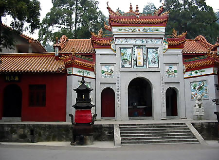 在岳麓山半腰,系晉初古寺,是佛教人湘最早的一所大寺。明神宗時(shí) 更名為萬(wàn)壽寺,民國(guó)初年復(fù)名,古麓山專。唐代大詩(shī)人杜甫曾用“寺門高開(kāi) 洞庭野,殿腳插入赤沙湖”的詩(shī)句稱頌殿字宏大。大雄寶殿等主要建筑,于 1944年被炸毀,僅存山門和觀音閣,現(xiàn)已修整一新.山門上有“古麓出寺” 的橫額,兩旁為“漢魏最初名勝,湖湘第一道場(chǎng)"對(duì)聯(lián),門外古楓參天,濃 蔭覆蓋,門內(nèi)園圃百花爭(zhēng)艷。觀音閣為磚木結(jié)構(gòu),1955年曾加以修葺,1980 年再次修整恢復(fù)原貌,并在廳堂神龕中置觀音像。閻內(nèi)常舉辦小型書(shū)畫(huà)展 覽。觀音閣前有兩株羅漢松,左邊一株是六朝遺跡,稱“六朝松",樹(shù) 齡在1700年以上, 是岳麓山植物界的"元老", 老干新枝,紛繁翁 郁,彌足珍貴;右邊一株于清代被巨風(fēng)拔去并被清代人補(bǔ)植。兩棵古松 并峙于閣前,游人樹(shù)下經(jīng)過(guò),若入關(guān)隘,故有“關(guān)松"之稱。