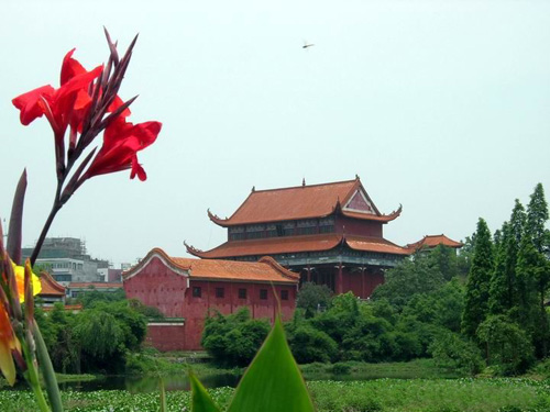 盤王是瑤族人民的始祖,幾迦嗣衩康揭坏囟家⒈P王殿,以紀(jì)念先祖。江華瑤族進(jìn)入縣境后,曾立有數(shù)座盤王殿,但風(fēng)雨剝蝕,早已毀壞。后來(lái)根據(jù)瑤族人民的意愿,將原建于姑婆大山中的盤王殿遷建于縣城沱江鎮(zhèn)。遷建的盤王殿,坐落在風(fēng)景秀麗的平頭巖公園內(nèi),地勢(shì)依序?yàn)榈汀⒅、高三?jí),與平頭巖相對(duì)應(yīng)。