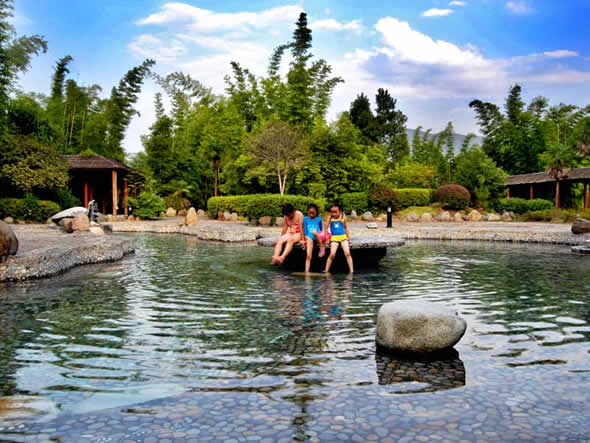 | 熱水溫泉,位于湘、粵、贛三省交界的熱水鎮(zhèn),是我國南方水溫最高,流量最大,水質(zhì)最好,熱田面積最寬的天然溫泉。熱水水溫一般為 91.5℃,最高達98℃。熱泉水無色透明,稍有硫化氫氣味,為低礦化、低硬度、高溫弱堿性重碳酸、硫酸-鈉型氟及硅質(zhì)礦泉水,含硅、鈉、鉀、鈣、鍶、硼、氟、氡等三十多種對人體有益的元素。其中“氡”元素正常情況含量30IMA即可做為生殖系統(tǒng)輔助治療藥物,根據(jù)聯(lián)合國教科文組織官員實地考察,福泉山莊熱泉水“氡”含量達到了130IMA左右,對治療不孕不育的生殖系統(tǒng)疾病有較好的輔助治療效果。