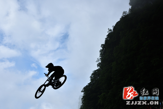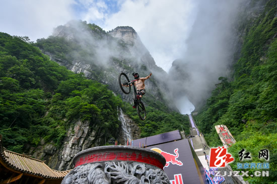 張家界天門山天梯速降賽即將拉開帷幕,7月14日,來自不同國家的14名選手齊聚天門山999級臺階進行適應(yīng)場地訓(xùn)練。選手們在空中做出各種翻滾特技動作,引來游人尖叫不斷。