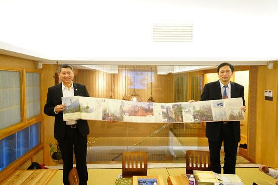 歐陽斌(左)走訪蘋果旅游集團(tuán)總部