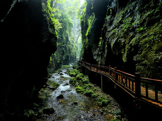張家界大峽谷位于張家界市慈利縣三官寺鄉(xiāng),緊鄰張家界武陵源風(fēng)景名勝區(qū)。張家界大峽谷原來(lái)有兩個(gè)名字,一個(gè)叫做爛船峽:來(lái)源于神泉溪,整個(gè)大峽谷和南方紅旗渠的水流都來(lái)源于這里,傳說(shuō)以前從泉眼中涌出過(guò)很多爛了的船板,當(dāng)?shù)厝藗冇譄o(wú)法知曉爛船板從何而來(lái),所以這里得名“爛船峽”;另外一個(gè)名字叫做亂泉峽:是指峽谷中的兩面石壁,溪泉眾多,滿(mǎn)峽飛流。大峽谷中的飛瀑神泉比比皆是,一路游覽下來(lái),讓人目不暇接,峽谷里植被繁茂,宛如來(lái)到世外桃源。張家界大峽谷峽谷間是一條清幽的小溪,張家界大峽谷玻璃橋作為世界第一高空玻璃橋即將為世人展現(xiàn)張家界大峽谷的又一個(gè)奇跡。