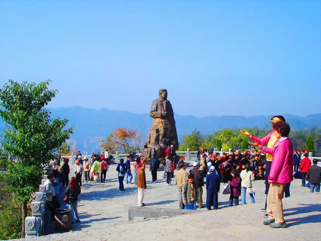 坐落在1200米的千層巖左側(cè)。公園內(nèi),屹立在“云青巖”上的賀龍銅像與大自然連為一體,形成獨特的藝術(shù)風格。這是我國近百年塑造的最大的一尊銅像。神堂灣:神堂灣是一個神秘的天國,一座綠色的迷宮,至今無人問津。一個凹形深谷,四面是刀切般的絕壁,終日霧雨霏霏。向下層巒疊嶂,形成五級神堂,谷底深不可測,被稱作“神秘的天國”。
