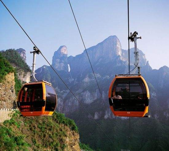 百龍?zhí)焯,垂直高?35米,運行高度326米,由154米山體內(nèi)堅井和172米貼山鋼結(jié)構(gòu)井架等組成,采用三臺雙層全暴露觀光電梯并列分體運行,每臺次載客50人次,運行速度3米/秒,三臺同時運行每小時往返量達4000人次。百龍?zhí)焯莸男藿▽崿F(xiàn)“山上游,山下住”的目標,提供了交通保障,將袁家界天下第一橋、迷魂臺、天懸白練以及烏龍寨、楊家界等絕世美景從幕后推向了前臺,并將天子山、袁家界、金鞭溪等精品旅游線路連為一體,解決了多年困擾景區(qū)的交通瓶頸問題。